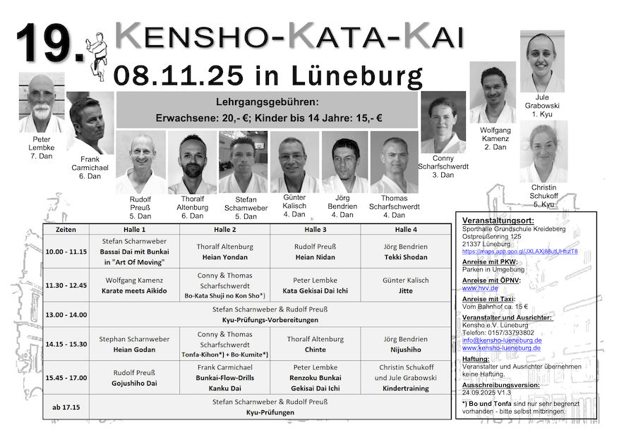 Am 4. Mai 2025 fand in Lüneburg der Tag der Inklusion und Vielfalt statt – und Kensho war selbstverständlich mit einem eigenen Stand vertreten! Viele Interessierte nutzten die Gelegenheit, sich über unser Training, unsere Philosophie und unsere Angebote zu informieren. Außerdem wurden Flyer für unsere OpenWeeks-Aktion verteilt, um noch mehr Menschen für Bewegung, Gemeinschaft, Karate-do und Aikido zu begeistern.